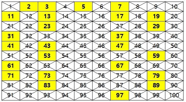 어떠한 수의 배수는 소수가 아니므로 범위 내에서 소수가 아닌 수를 제외하는 방식