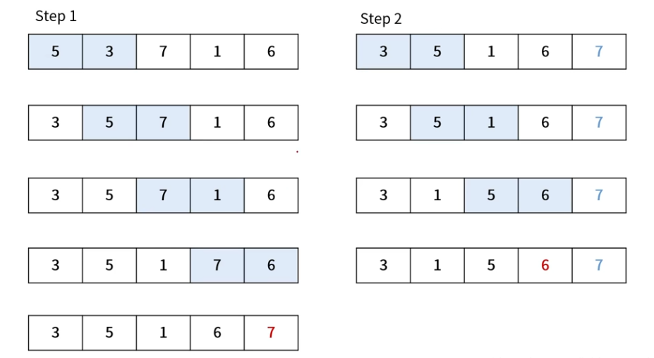 첫 사이클을 완료하면 가장 큰 수가 맨 뒤로 이동하기 때문에